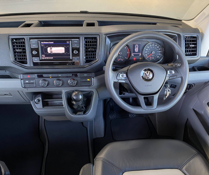 High spec and good looking VW Crafter MWB camper that’s covered just 370 miles. This Commerce Plus model features cruise control, cab air conditioning, multi-function steering wheel, App-Connect, satellite navigation, front and rear parking sensors, reversing camera, auto wipers and lights, overhead cab storage, single front seats and more. This is the 140bhp model with 6-speed manual gearbox and looks great in its Metallic VW Deep Black paint with matching swamper style alloy wheels.
