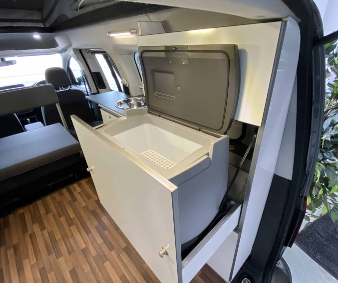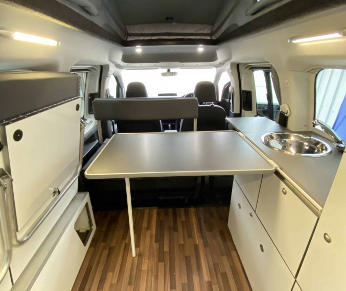 The Reimo Caddy Camp is a very versatile and practical compact camper that feels like a car. Converted from new, the clever design retains five of the original Caddy Maxi seats with the rear of the vehicle being converted to house a spacious camper conversion with pop-top roof. Features include kitchen area with sink, single burner hob and compressor fridge, 12v leisure battery, lighting and charging sockets and 240v mains hook-up. As with every camper we sell, it will be supplied with a fresh Habitation safety certificate.