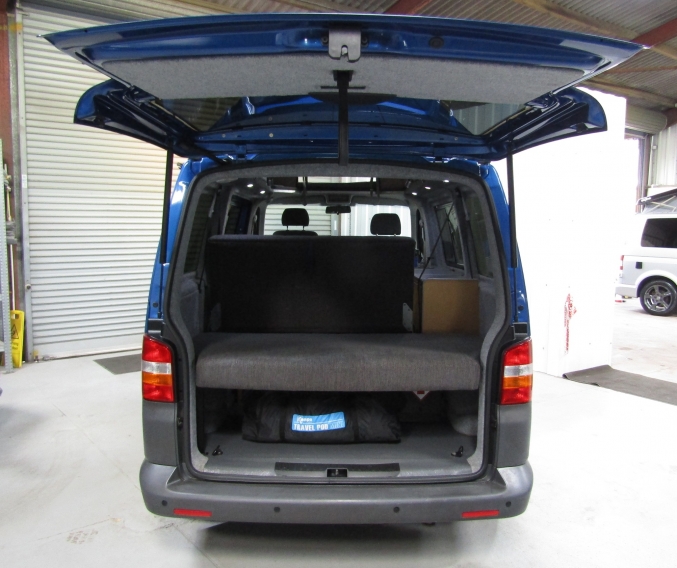 Excellent value VW T5 camper that has covered 90,350 miles with a full service history. This 4-berth camper features cab air conditioning, Propex gas heating and is in the rare metallic VW Raven Blue with factory glazed tailgate. Originally a wheelchair adapted vehicle, the base vehicle has only ever seen light use and was professionally converted by Work and Leisure Vehicles in 2012, with the V5 updated to reflect Motor Caravan. Designed around a larger than normal bed, the conversion still features a hob, sink, fridge and heating. And as with every camper we sell it will be supplied with a Habitation safety certificate. Please note; although the rear bed / seat looks to be well made and fitted, we don’t believe it to be a safety tested model. It has a full service history with 10 stamps in the service schedule and its current MOT runs until May 2020. Last serviced at 89,194 miles, it had a cambelt and water pump replacement in November 2018 and a clutch kit with dual mass flywheel in February 2019. It was also remapped in 2012 from 85 to 110 bhp.