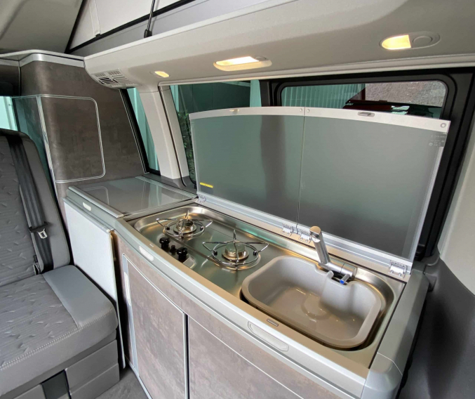 The VW California Ocean is a high specification 4-berth camper with lots of design elements that only a major manufacturer could offer. From the multi-positional rear seat and integral table and chairs, to the electric roof, its quality is evident throughout. The Ocean is the range topper and comes with lots of standard features including ambient interior lighting, electric side door, programable auxiliary heater, Thule wind out awning, twin leisure batteries, 230v inverter and premium graphite finish furniture. As with every camper we sell, it will be supplied with a fresh Habitation safety certificate.
