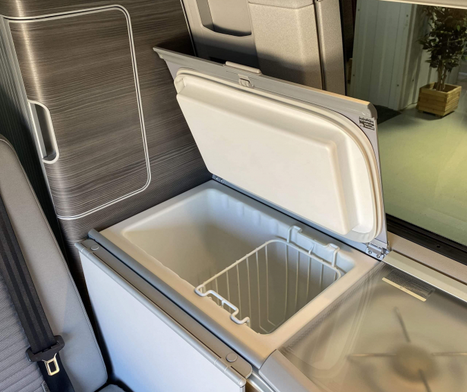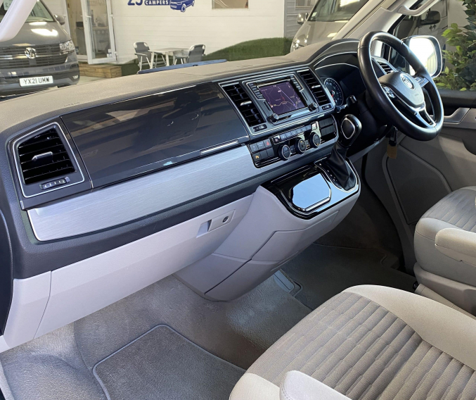 High specification 199bhp DSG automatic VW T6 California Ocean that’s covered 34,500 miles with a full VW service history. Owned from when it had just 60 miles on the clock, this 4-berth camper features cruise control, Climatic 3-zone cab and rear air conditioning, leather multi-function steering wheel, front and rear parking sensors, App-Connect, satellite navigation, reversing camera, heated front seats, auto wipers and lights, headlight washers and more. The stylish California comfort dash provides lots of useful storage compartments and even includes a bottle cooler and torch.