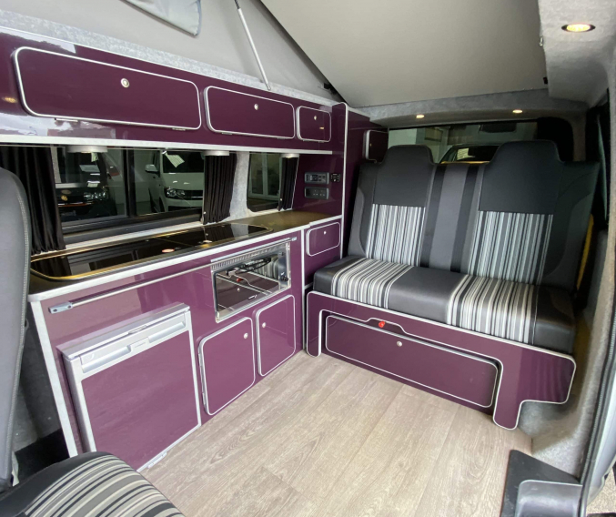 The Camper King Monte Carlo conversion is a hugely popular model offering a well proven layout from an award winning converter. It is both well built and practical with excellent storage and a good range of features which includes gas hob and grill, onboard water tank with gauge, compressor fridge, 12v and 240v systems, touch LED lighting and Eberspacher diesel heating. It also comes with a Vango Kela 4 inflatable drive away awning and Khyam sun canopy. As with every camper we sell, it will be supplied with a fresh Habitation safety certificate.