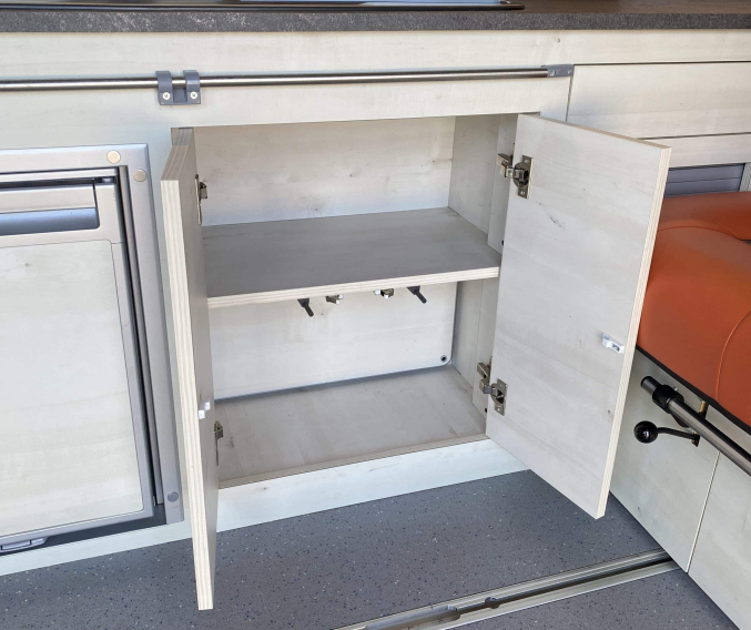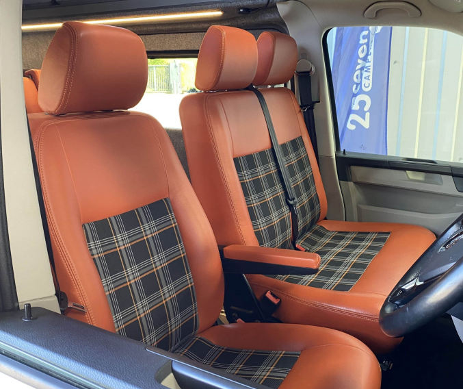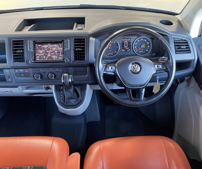 Converted when less than a year old, this high quality Three Bridge Infinity Low-line features premium parts such as Reimo pop-top roof, Reimo 3000 three seat Variotech multi-positional bed, Webasto diesel heating, Propex underslung gas tank with BBQ point, roof mounted solar panel and larger 160ah leisure battery. All six seats are upholstered in genuine burnt orange leather with GTI cloth insert, and being a LWB it has plenty of storage with the sliding rear seat making this a very versatile camper. As with every camper we sell, it will be supplied with a fresh Habitation safety certificate.
